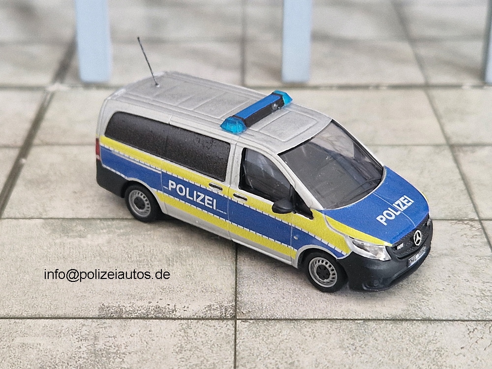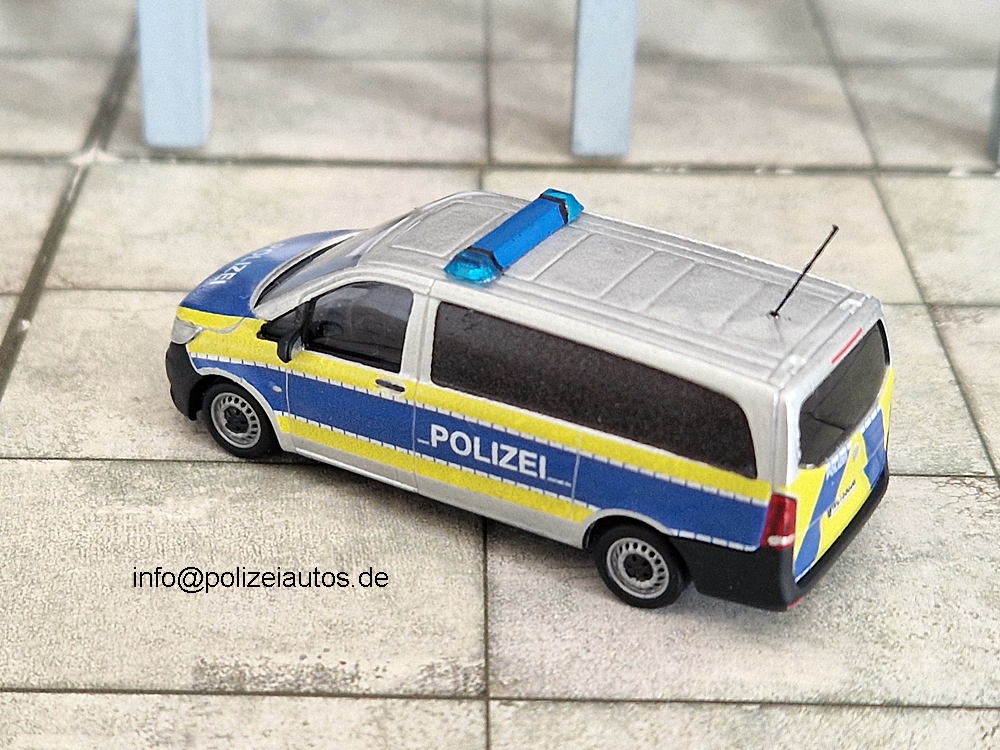 Das minikit von Busch wurde mittels Airbrush in silber lackiert. Nach dem Trocknen wurden Decals von SRM87 aufgebracht. Desweiteren wurden sämtliche Details wie Blaulichtbalken, Frontblitzer und eine Antenne angebracht.