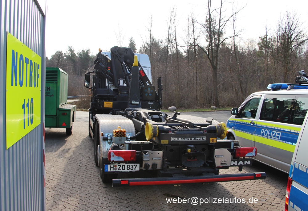 | Beschreibung: | Wechselladerfahrzeug der Polizei Niedersachsen. Das Fahrzeug wird überwiegend im ASDN-Bereich zum Transport vorhandener austauschbarer Ladungsträger (ATL), wie z.B. Mobiler Wachen zum Einsatzort genutzt. Es ersetzt dieses Fahrzeug. |