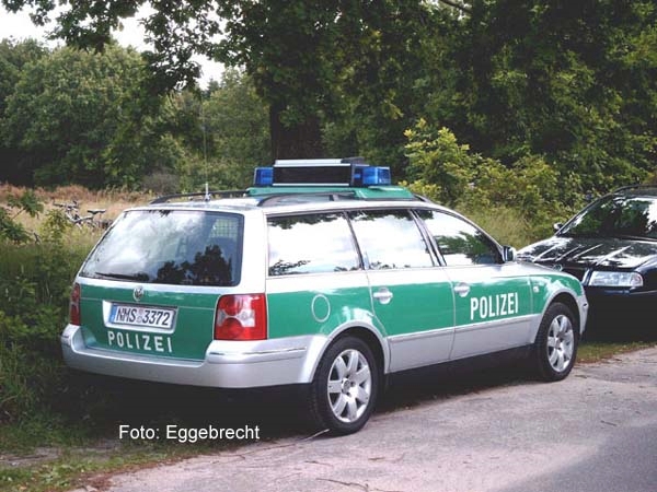 Funkstreifenwagen der Autobahnpolizei Schleswig-Holstein mit Infogeber