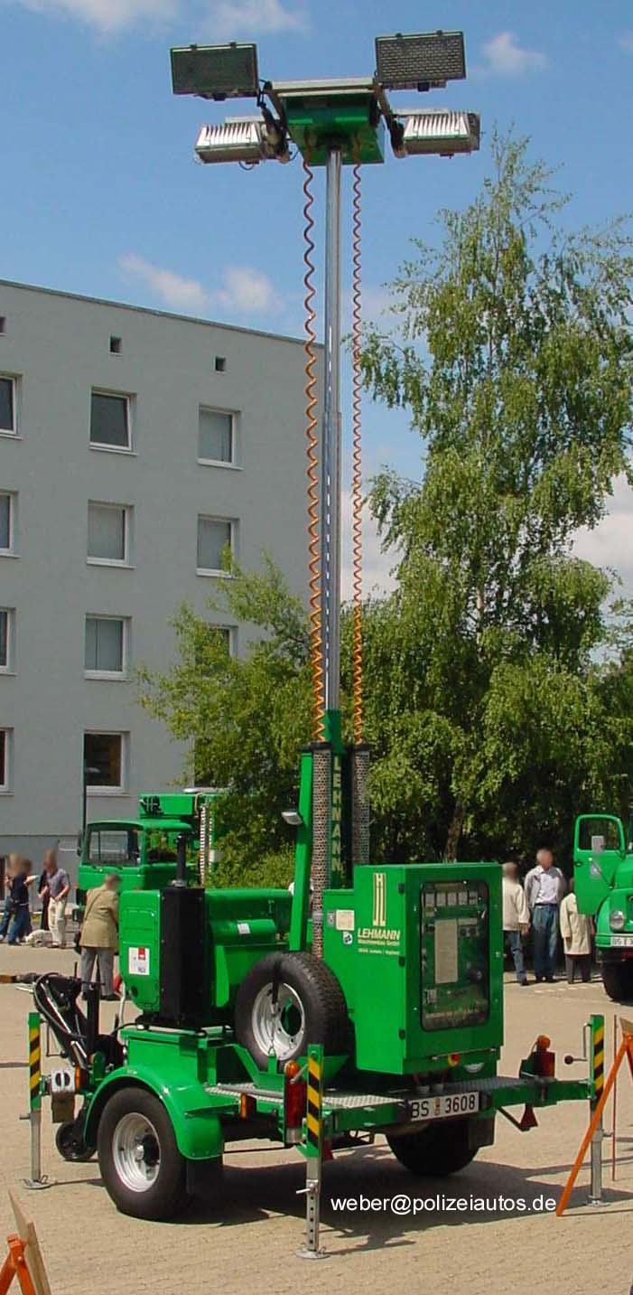 | Beschreibung: | Dieser 1-achs.-Anhänger der Bereitschaftspolizei Niedersachsen wird bei Einsätzen in der Dunkelheit zum Ausleuchten von Einsatzstellen benutzt (HIER). |