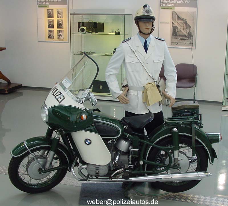 | Beschreibung: | Streifenkrad mit sogenannter Heinrich-Verkleidung, Bj.69 - 490 ccm - 26 PS - 130 km/h. Heute gehört es zur Polizeigeschichtlichen Sammlung Niedersachsen und kann dort besichtigt werden. |