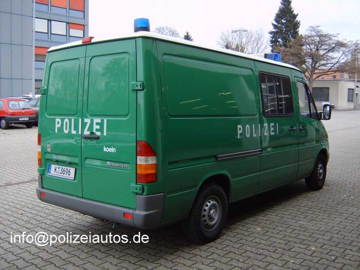 | Beschreibung: | Gefangenentransportkraftwagen mit Blaulichtbalken und dritter RKL am Heck rechts, Polizeischriftzüge rundum, auf der Motorhaube ind Spiegelschrift. Fotos: Marcel Spichalla |