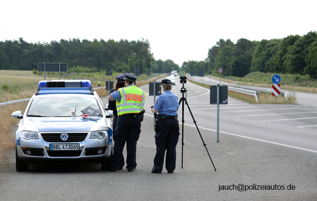 Lasermessung auf einer Landstrasse in Brandenburg.