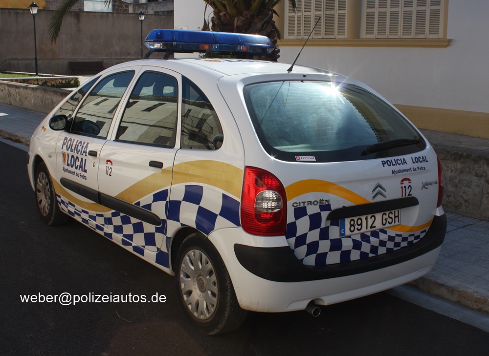 Funkstreifenwagen der Policia Local, in der Gemeinde Petra, auf Mallorca.