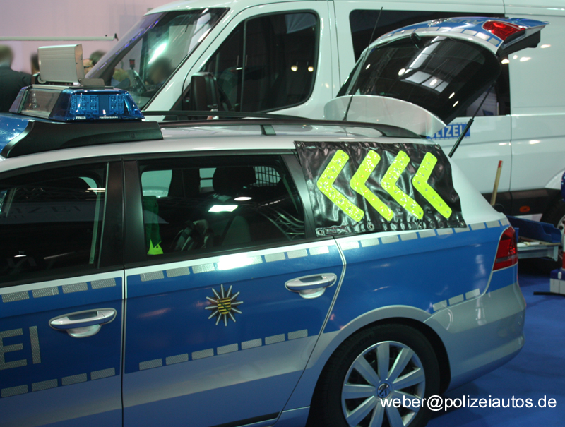 | Beschreibung: | Funkstreifenwagen der Polizei Sachsen mit einem seitl. angebrachten LED-Modul mit Richtungspfeilen auf der GPEC 2012. Vorteil dieses Systems ist die schnelle Anbringung an dem Fahrzeug. |