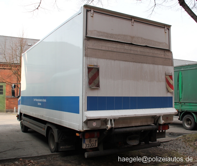 Fahrzeug mit Kastenaufbau und Ladebordwand für Logistikaufgaben.