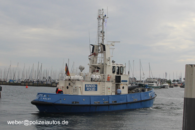 | Beschreibung: | Schlepper der Bundespolizei, BP 5 (Rettin) Technische Daten: Typ: P22 Rufzeichen: DLGY Länge: 21,81m, Breite:6,62m, Seitenhöhe: 2,90m, Tiefgang: 2,90m, Antrieb: 2xMWM RHS 518 V12, Höchstleistung: 2X239KW, Dauerleistung: 2X195KW, Höchstgeschwindigkeit: 9 Knoten, Marschgeschwindigkeit: 9 Knoten, Baujahr: 1976, Bauwerft: Mützelfeldtwerft Indienststellung: 20.12.1979 Foto: Olaf Schulz, u.a. |