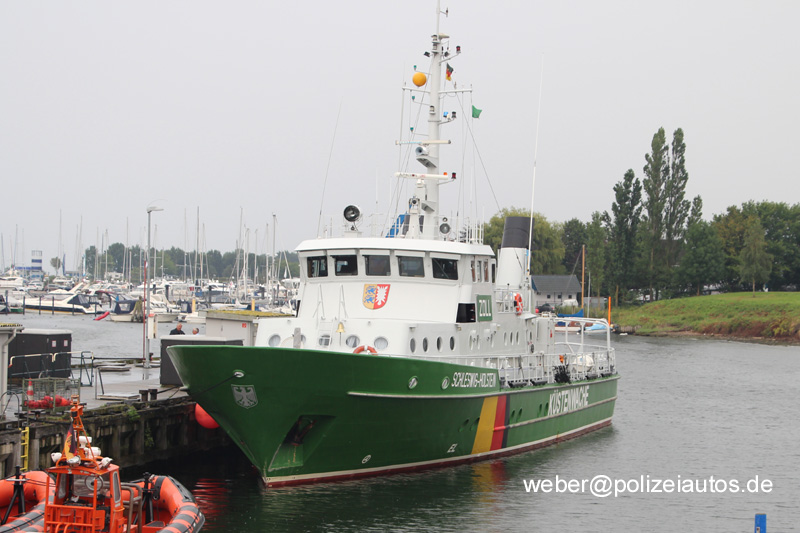 | Beschreibung: | Zollkreuzer "Schleswig-Holstein", im Hafen der BPOL See, in Neustadt in Holstein. Das Boot wurde 1988 in Dienst gestellt. Technische Daten: Hersteller: Schiffs- und Bootswerft Fr. Schweers (Bardenfleth/ Weser) Länge ü.A.: 38,40 m Breite: 7,80 m Tiefgang: 2,10 m Masse: 258 BRZ Geschwindigkeit: 29 Kn (ca. 53 km/h) Motorisierung: 3x Deutz MWM mit jeweils 1320 kW/ 1795 PS Antrieb: Verstellpropeller (Mitte) und Festpropeller (Außen), Bugstrahlruder |