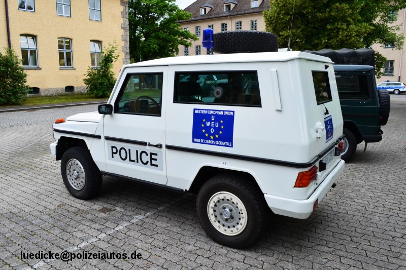 Beschreibung: | Gepanzerter Sonderwagen (SW 3) auf Basis des Mercedes 280 GE für deutsche Polizeibeamte im WEU-Einsatz in Mostar (Bosnien & Herzegowina). Das Fahrzeug stammt vom Bundesgrenzschutz und wurde für den Auslandseinsatz weiß lackiert (mit "Police"-Schriftzug auf den Türen und der Motorhaube) Das Fahrzeug gehört heute zum Bestand des BGS-Museums Rosenheim. |