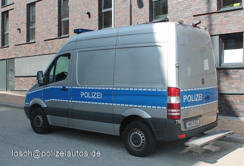 | Beschreibung: | Gefangenentransportkraftwagen der Polizei Hamburg. Neben einigen dieser Gefangenentransportkraftwagen auf 3,5t-Fahrgestell mit kurzem Radstand verfügt man in Hamburg auch über Sprinter auf 4,6t-Fahrgestell und mittlerem Radstand. Zur Heckabsicherung wurden an der Dachkante zwei LED-Blitzer Typ Hänsch Sputnik nano montiert. |