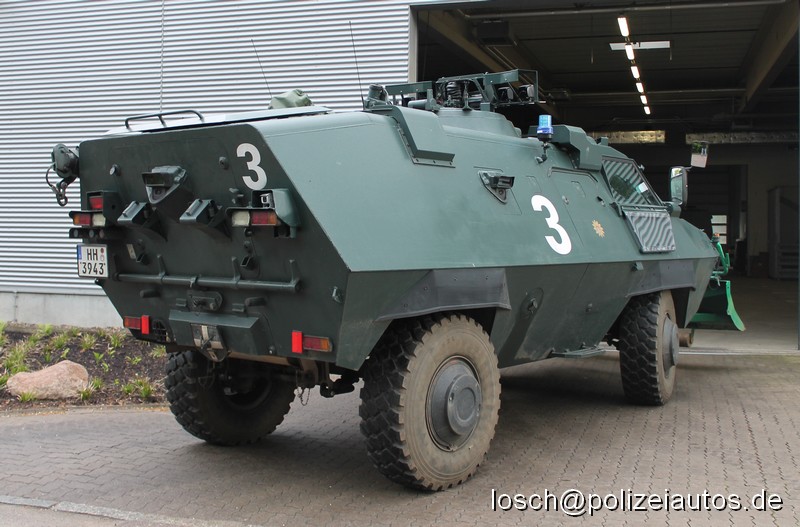 | Beschreibung: | Sonderwagen SW 4 mit Räumschild an der Fahrzeugfront. Bei diesem aus dem Bestand der Bundespolizei stammenden Fahrzeug wurden Ende 2014 die bisherigen Blaulichter durch LED-Kennleuchten ersetzt. Ebenso wurde die Lichtleiste mit LED-Leuchten ausgestattet sowie am Heck eine Rückfahrkamera montiert. |