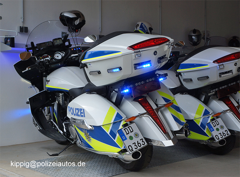 | Beschreibung: | Vier Motorräder diesen Typs sind seit Mai 2017 bei der Polizeidirektion Chemnitz im Dienst. Eingesetzt werden sie als Kontrollfahrzeuge in der Grenzregion, auch grenzüberschreitend nach Tschechien. An Bord haben sie neben einem Notebook, auch Digitalfunk, ein Drogenprüfgerät, Dokumentenprüfer, Schallpegelmesser und ein System zur Geschwindigkeitsüberwachung. |