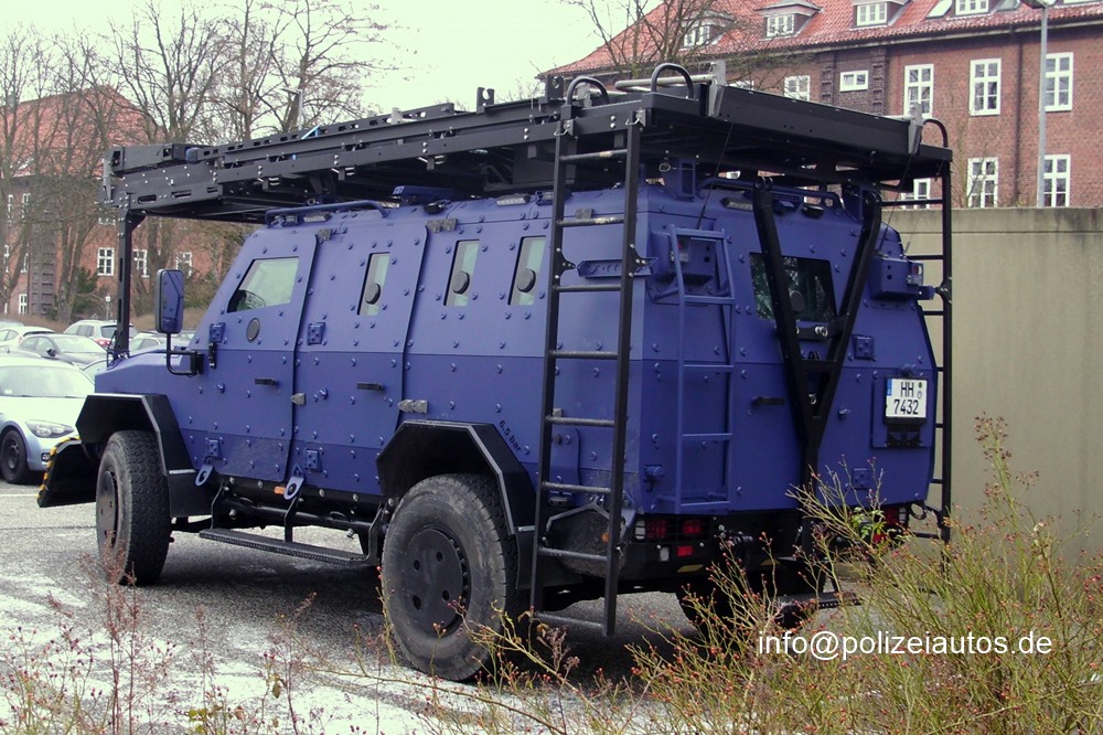Sondergeschütztes Einsatzfahrzeug der Polizei Hamburg seit 2017.