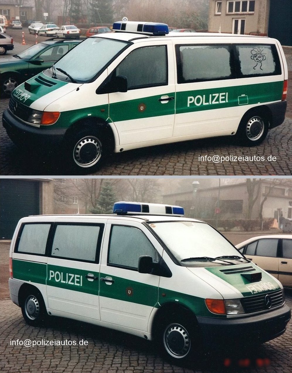 | Beschreibung: | Mannschaftstransporter (le Mkw)/Fustw der Polizei Hamburg. Dieses Fahrzeug wurde im Dezember 1997 angeschafft (zuvor lief es in Berlin -siehe Türwappen-, evtl. als Vorführfahrzeug). Foto 1+2: Jörns Fotos 3-5 (1997) und Info: I. Kröning |