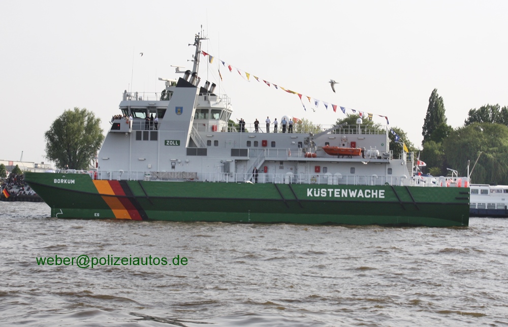 | Beschreibung: | Zollkreuzer Borkum in SWATH-Bauweise, hier in der Einlaufparade zum 822. Hamburger Hafengeburtstag am 06.05.2011. Technische Daten Das Schwesterschiff gibt es HIER zu sehen. Seit Januar 2018 trägt die Borkum das NEUE Farbkleid. |