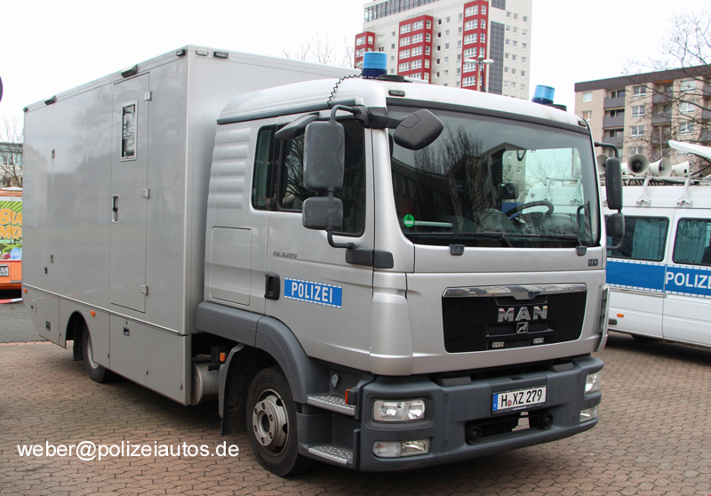 | Beschreibung: | Delaborierfahrzeug des LKA Niedersachsen. An den oberen Kanten des Kofferaufbaus besitzt das Fahrzeug, wie auch schon die Pferdetransporter, LED-Blitzer. Hier ist das Fahrzeug ebenfalls mit einer aufgesetzten Magnet-Sosi, sowie mit POLIZEI-Magnettafeln ausgerüstet, bzw. gekennzeichnet. Weitere Details, siehe HIER Fotos: Rüdiger Barth u.a. |
