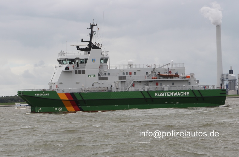 | Beschreibung: | Zollkreuzer Helgoland in SWATH-Bauweise. Technische Daten: Schiffstyp: Zollkreuzer, SWATH-Bauweise, Bauwerft: TKMS Blohm + Voss Nordseewerke, Stapellauf: 2009 Länge: 49,35m Breite: 19,00m Tiefgang max 4,55m Verdrängung: ca. 1000 Besatzung: 14 Mann Maschine: dieselelektrisch Dieselgeneratoren: 4 x MTU 16V 4000 M 40B à 2.200 kW (4 x 2.992 PS) Elektrische Antriebsmotoren: 2 x Siemens, Asynchronmotoren à 3.800 kw (2 x 5.168 PS) Elektrisches Fahrnetz: 690 V/60 Hz AC mit zwei Frequenzumrichtern Bugstrahlruder: 300 kW Maschinenleistung: 11.965 PS (8.800 kW) Geschwindigkeit: max. 20 kn (37 km/h). Tochterboot KEGELROBBE Fotos 1-3: sojus31 Das Schwesterschiff gibt es HIER zu sehen. |