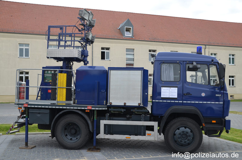 | Beschreibung: | Lichtmastkraftwagen (Limakw) der Bereitschaftspolizei Brandenburg, Landeseinsatzeinheit (LESE) TEE. Das ehemals grüne Fahrzeug wurde gem. der Farbstudie von Polizeiautos.de lackiert und beschriftet. Fotos: Ingo Hoffmann |