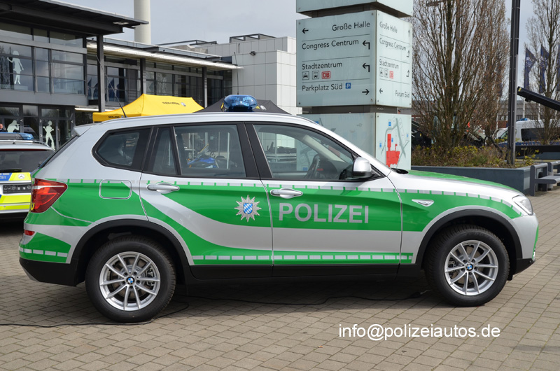 BMW-Geländewagen in der Version eines bayerischen Funkstreifenwagens, ausgestellt auf der IPOMEX 2015.
