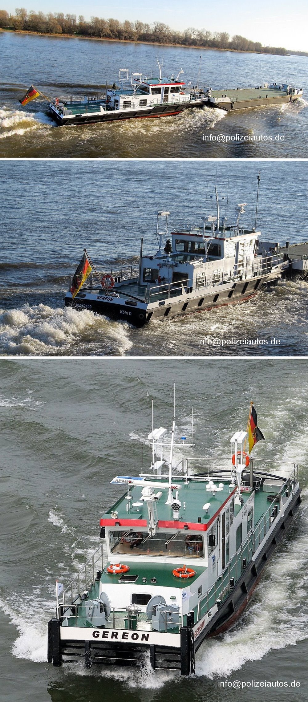 | Beschreibung: | Aufsichts- und Arbeitsschiff des Wasser- und Schifffahrtsamt Köln. Das Schiff "Gereon" wurde am 12.Mai 2015 im Köln - Mühlheimer Hafen in Dienst gestellt. Für Arbeitseinsätze ist es mit Schubschultern vorn und einem Schlepphaken am Heck ausgerüstet. Die "Gereon" ist ein sogenannter Zweischrauber mit zwei 379 PS- starken Motoren. Sie sorgen für 20,4 Stundenkilometer auf dem Rhein. Hier zuständig für 40 Rheinkilometer von Köln - Porz bis Zons. Jede Menge Elektronik, wie sie auch bei den Vorgängern "Wildente" bzw. "Hamster" zu finden war, vervollständigen die Ausstattung. Länge: 20,23 Meter, Breite: 4,84 Meter, Tiefgang: 1,10 Meter Gesamtkosten für den Neubau: 1,1 Millionen Euro. Die "Gereon" löst die "Wildente" in Köln - Mühlheim ab, die nach 47 Jahren aus dem Dienst genommen wird. Dieser Schiffstyp löst auch das Schiff "Hamster" am Standort Niederkassel ab. Info: Kölnische Rundschau. Seit 2018 trägt das Schiff jetzt auch auf beiden Seiten die schwaz/ rot/ gelben "Streifen". Fotos: Manfred Wilewka |