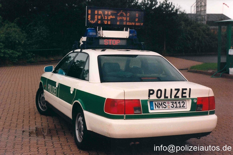 Funkstreifenwagen der Autobahnpolizei Schleswig-Holstein mit Infogeber der Fa. microtec.