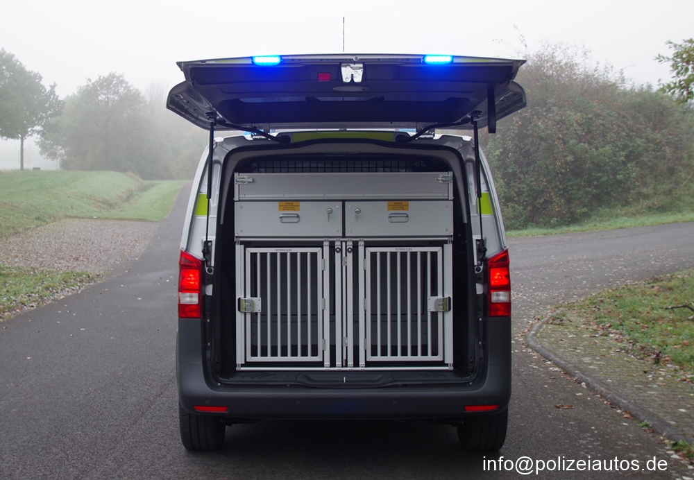 | Beschreibung: | Diensthundeführerfahrzeug der hessischen Polizei mit kurzem Radstand und Schiebetüren auf beiden Seiten. Im Heckbereich sind zwei Hundeboxen eingebaut. Das Fahrzeug wurde gem. der VESBA-Studie gelb foliert. Fotos: Dönges |