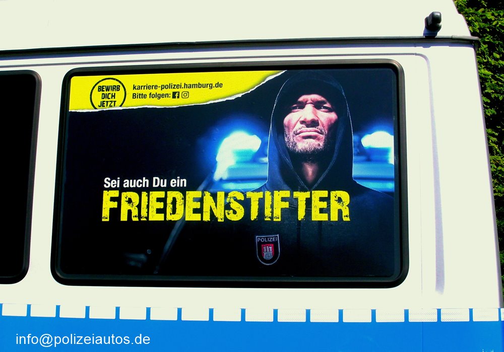 Im Rahmen der Werbekampagne 2018 erhielten viele Fahrzeuge der Hamburger Polizei neue Werbeaufkleber.