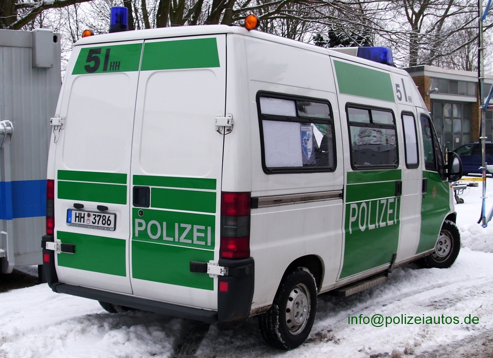 | Beschreibung: | Bundeseinheitlicher leichter Befehlskraftwagen (leBefkw) der Bereitschaftspolizei Hamburg mit blauer Bauchbinde (Zustand auf Fotos 2014), geschlossenen (verblechten) Hecktüren, sowie beidseitig Fenstern im schmalen Seitenteil hinter den vorderen Türen. Foto 3+4 und zeigen das Fahrzeug noch mit grüner Folierung. Fotos: I. Kröning |