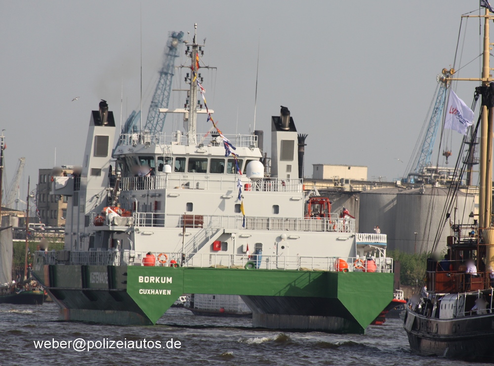 | Beschreibung: | Zollkreuzer Borkum in SWATH-Bauweise, hier in der Einlaufparade zum 822. Hamburger Hafengeburtstag am 06.05.2011. Technische Daten Das Schwesterschiff gibt es HIER zu sehen. Seit Januar 2018 trägt die Borkum das NEUE Farbkleid. |