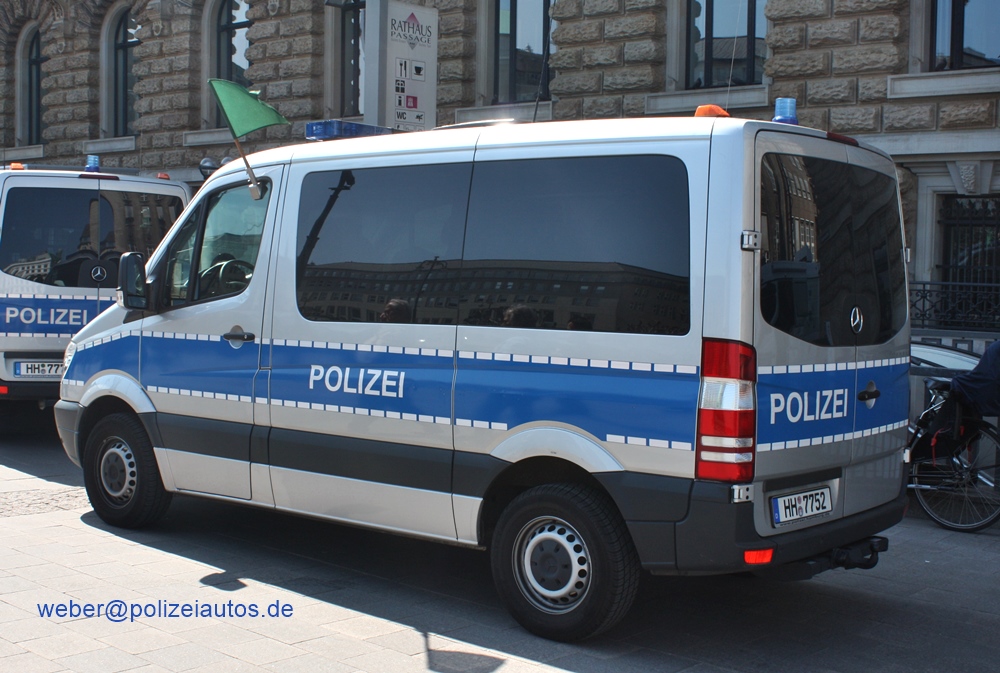 | Beschreibung: | Anläßlich des Besuches des norwegischen Kronprinzen HAAKON am 06.05.2011 in Hamburg, stellte die Hamburger Polizei eine Eskorte mit Fustw. und kleinem "Kradkeil". Am Ende dieser Kolonne fuhren zwei MB Sprinter, die jeweils mit einer grünen Flagge ausgestattet waren, desweiteren trug das letzte Fahrzeug eine entsprechende "Kolonnenbeschilderung". |