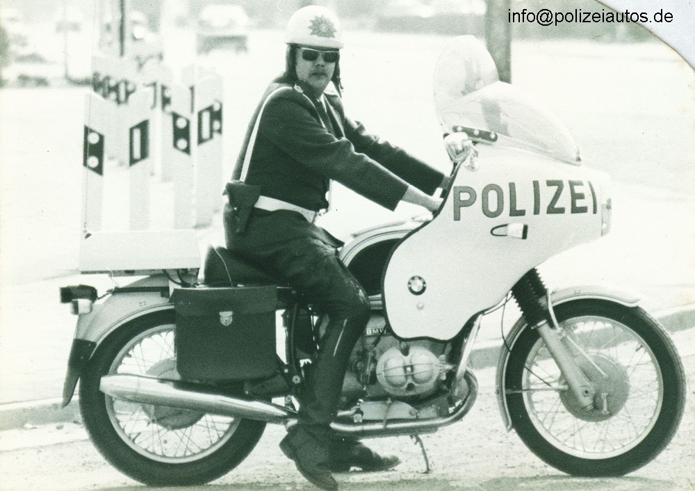 | Beschreibung: | BMW R 60/5 (Mittleres Funkkraftrad) der Polizei Niedersachsen mit "Gläser-Verkleidung", hier in reinweißer Ausführung. Die R 60/5 (599 ccm, 40 PS, 167 km/h Höchstgeschwindigkeit) wurde von 1969-1973 gefertigt. Das 4. Foto ist etwas 1970 in Emden entstanden. |