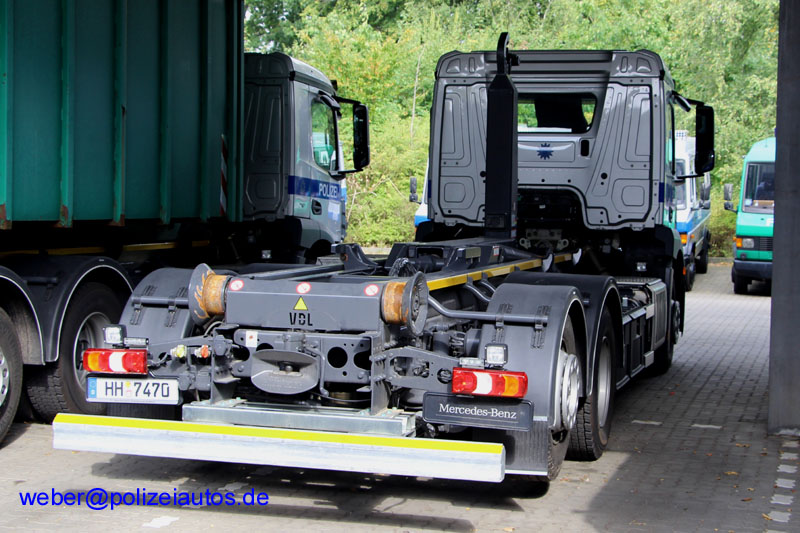 Wechselladerfahrzeug (WLF) der Polizei Hamburg; hier einmal ohne, bzw. mit alter Mulde.