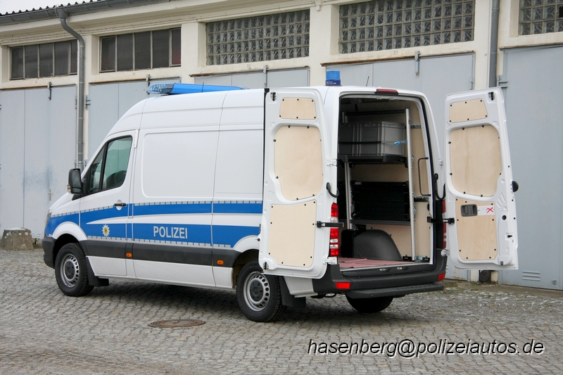Im Laderaum befinden sich Regaleinbauten und Zurrschienen zum Transport bzw. Sicherung von Ausrüstungsgegenständen. Ausgebaut wurde dieser Fahrzeugtyp bei der Fa. BINZ in Illmenau. |