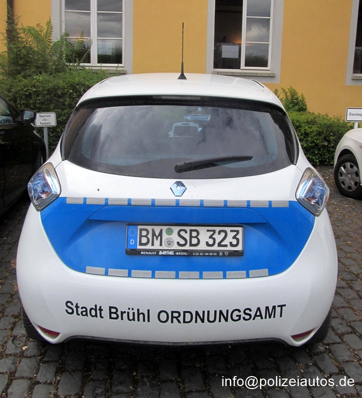 Rein elektrisch angetriebenes Einsatzfahrzeug des Ordnungsamtes der Stadt Brühl.