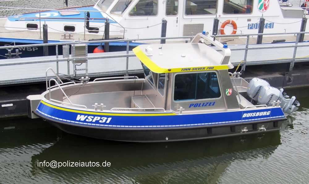 | Beschreibung: | Trailerbares Boot WSP 31 der Wasserschutzpolizei des Landes Nordrhein-Westfalen. Technische dATEN. Bauwerft: Tinn-Silverboats Maasbracht (NL) Motorisierung: 2 x Honda Außenbordmotoren, jeweils 100 PS Maximalgeschwindigkeit: 65 km/h Länge: 7 Meter Breite: 2,50 Meter Tiefgang: 60 Zentimeter Gewicht: 1,5 Tonnen Zuladung: Sieben Personen plus 200 Kilogramm Material von Rumpf und Aufbauten: Aluminium Kosten: 100.000 Euro Fotos: Manfred Wilewka |