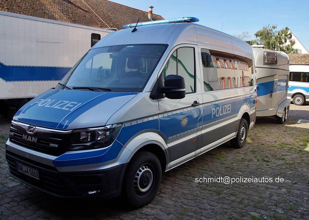 Beschreibung: | MAN TGE der Reiterstaffel, der Polizei Baden-Württemberg, mit Pferdetransportanhänger. |