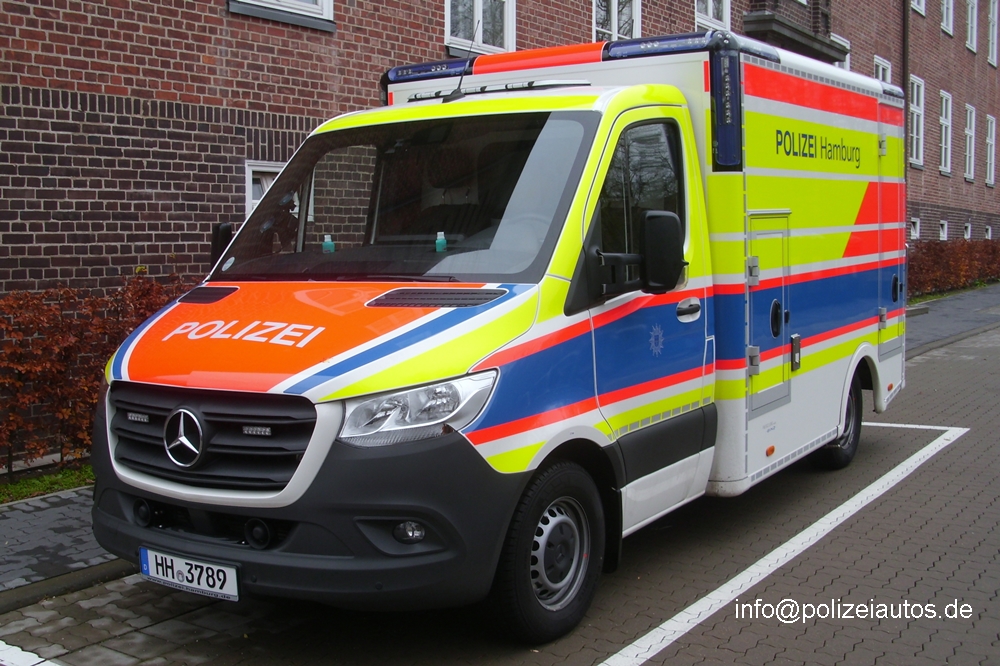 | Beschreibung: | Der bundeseinheitliche Rettungskraftwagen der Polizei Hamburg wurde inzwischen zusätzlich foliert: Polizei-Schriftzug auf der Motorhaube und am Heck, Polizei Hamburg auf den Seitenwänden, Polizeiwappen auf den Türen und großflächig gelbe Folien. Fotos: I. Kröning |