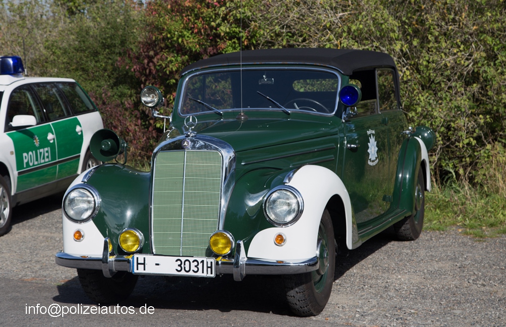 Mercedes-Benz 220 Cabrio (Originalfahrzeug) als Funkstreifenwagen der Polizei Niedersachsen.