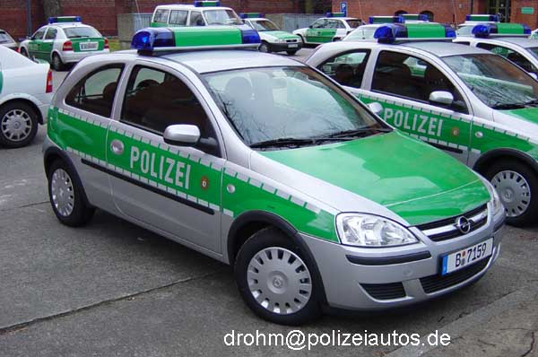 Opel Corsa C - Ewa ZOS (Einsatzwagen Zentraler Objektschutz) mit Reflexstreifen.