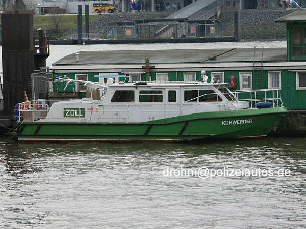 | Beschreibung: | Zollboot Kuhwerder im Hamburger Hafen. Technische Daten Baujahr: 1997 Bauwerft: Ernst Menzer Länge: 15,60 m Breite: 4,67 m Tiefgang: 0,70 m Verdrängung: ca. 15 t Maschine: 2x Volvo Penta TAMD 71 B/BT Maschinenleistung: 699 PS Antrieb: 2x Hamilton Jetantrieb Geschwindigkeit: 22 kn In 2017 wurde das Boot modernisiert und an die neue Farbgebung angepaßt. Desweiteren wurde das Boot in Hochwart umbenannt und an den Bodensee umstationiert. |
