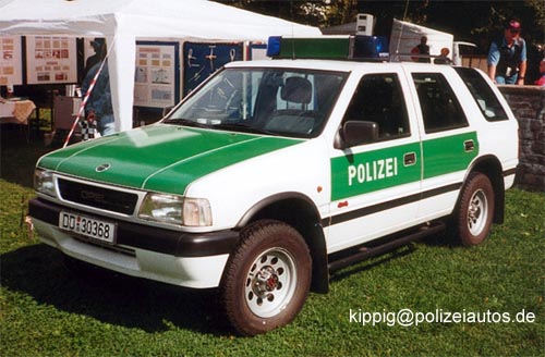 Einsatzfahrzeug der Wasserschutzpolizei. Der Frontera A kam auch bei der Reiterstaffel und als Funkstreifenwagen zum Einsatz.