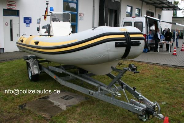 | Beschreibung: | Das Schlauchboot dient der Wasserschutzpolizei bei Großlagen (Hochwasser) sowie zur zivilen Gewässerüberwachung. Außenbordmotor von Yamaha mit 60PS. Fotos: Berolina |