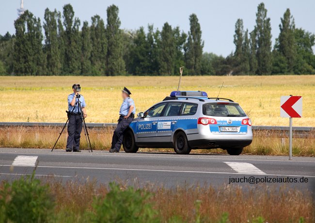Lasermessung auf einer Landstrasse in Brandenburg.