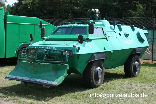 | Beschreibung: | Sonderwagen 4 der Landeseinsatzeinheit mit Räumschild und Mehrzweckaufsatz, wobei die Fahrzeuge mittlerweile über Frontblitzer in den Scheinwerfern oberhalb der Blinkleuchten verfügen (2.Ansicht). |