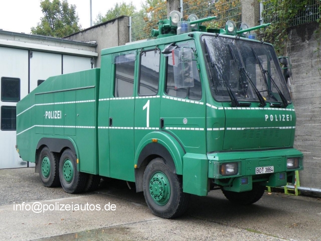 | Beschreibung: | Nach Instandsetzungsarbeiten an der Karosserie wurde dieser Wasserwerfer 9000 unter anderem mit reflektierenden Rechtecken (Gaps) in Form einer angedeuteten Bauchbinde ausgestattet.