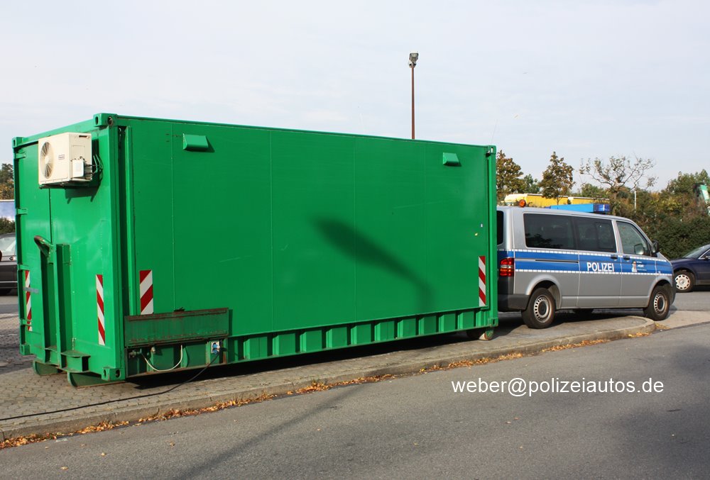 abgesetzter Container der Polizei Niedersachsen, hier als mobile Befehlsstelle für eine Großkontrolle aufgebaut.