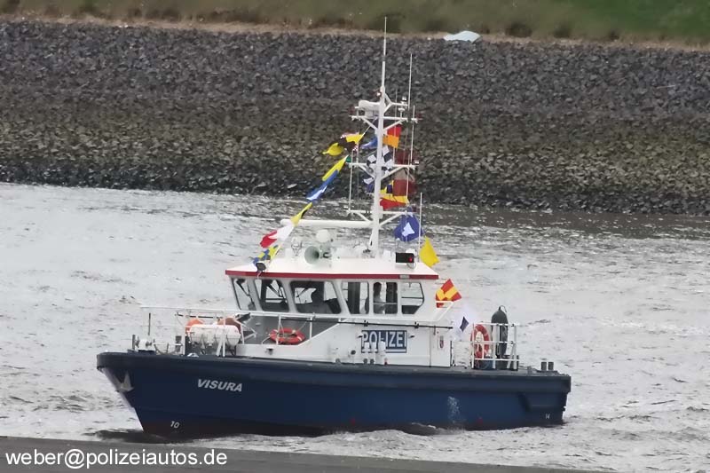 Beschreibung: | Zu festlichen Anlässen werden viele Schiffe über die Toppen geflaggt, die sog. Flaggengala, so hier auch das Bremerhavener Polizeiboot Visura |