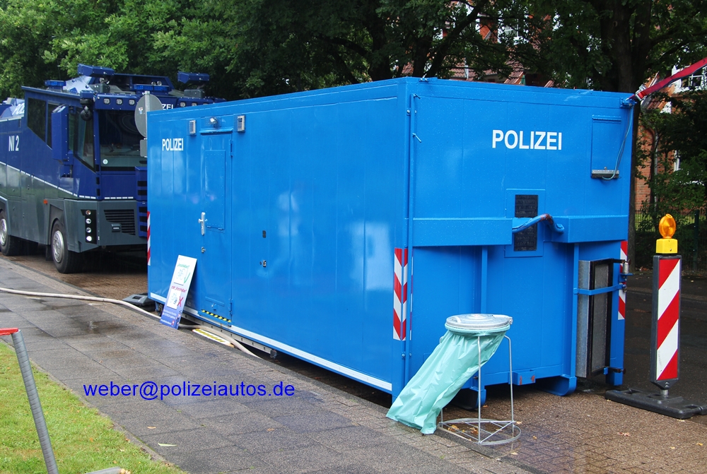 | Beschreibung: | Dieser Abrollbehälter der Polizei Niedersachsen wird bei Kontrollen oder Veranstaltungen als Mobile Wache genutzt. Er wurde auf allen Seitenwänden mit einem POLIZEI-Schriftzug versehen. |