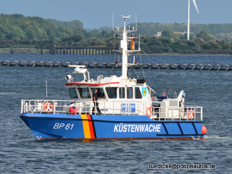 Dieses Boot wurde 2008 von der Schiffs- und Entwicklungsgesellschaft Tangermünde mbH gebaut. Technische Daten: Länge: 22,90m Breite: 5,20m Höhe: 3,20 m / 2,60 m Tiefgang: 1,20m Antriebsleistung: 2 x 588 kw Geschwindigkeit: max.23 Knoten Besatzung: 4 Beamte Schwesterschiffe: BP 62 "Uckermark", BP 63 "Altmark", BP 64 "Börde", BP 65 "Rhön 2" |