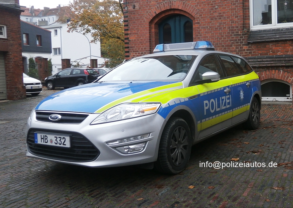 | Beschreibung: | Funkstreifenwagen der Ortspolizeibehörde Bremerhaven (mit Überwachungskamera nach vorne). Auch dieser Fustw. Ford Mondeo (bisher ein Einzelstück) erhielt zur besseren Erkennbarkeit eine zusätzliche, tagesleuchtfarbene, gelbe Folierung. Fotos: Melzer |